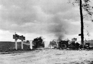 Colonel von Esebeck asks me to attack, I’m about to do it as soon as the locomotives are moved. Suddenly, everything cracks around us, everyone takes shelter. Panzer IV’s open fire. Two English caterpillars are destroyed.